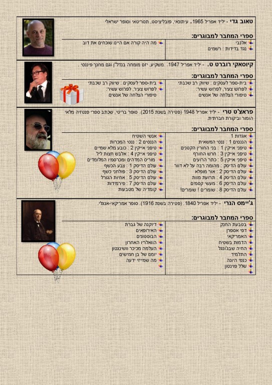 סופרים ילידי אפריל- המלצות קריאה!!