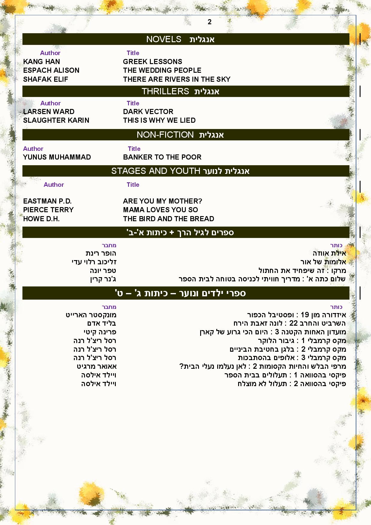 רשימת הספרים החדשים – מרץ 2026 - ספריית נווה מונוסון